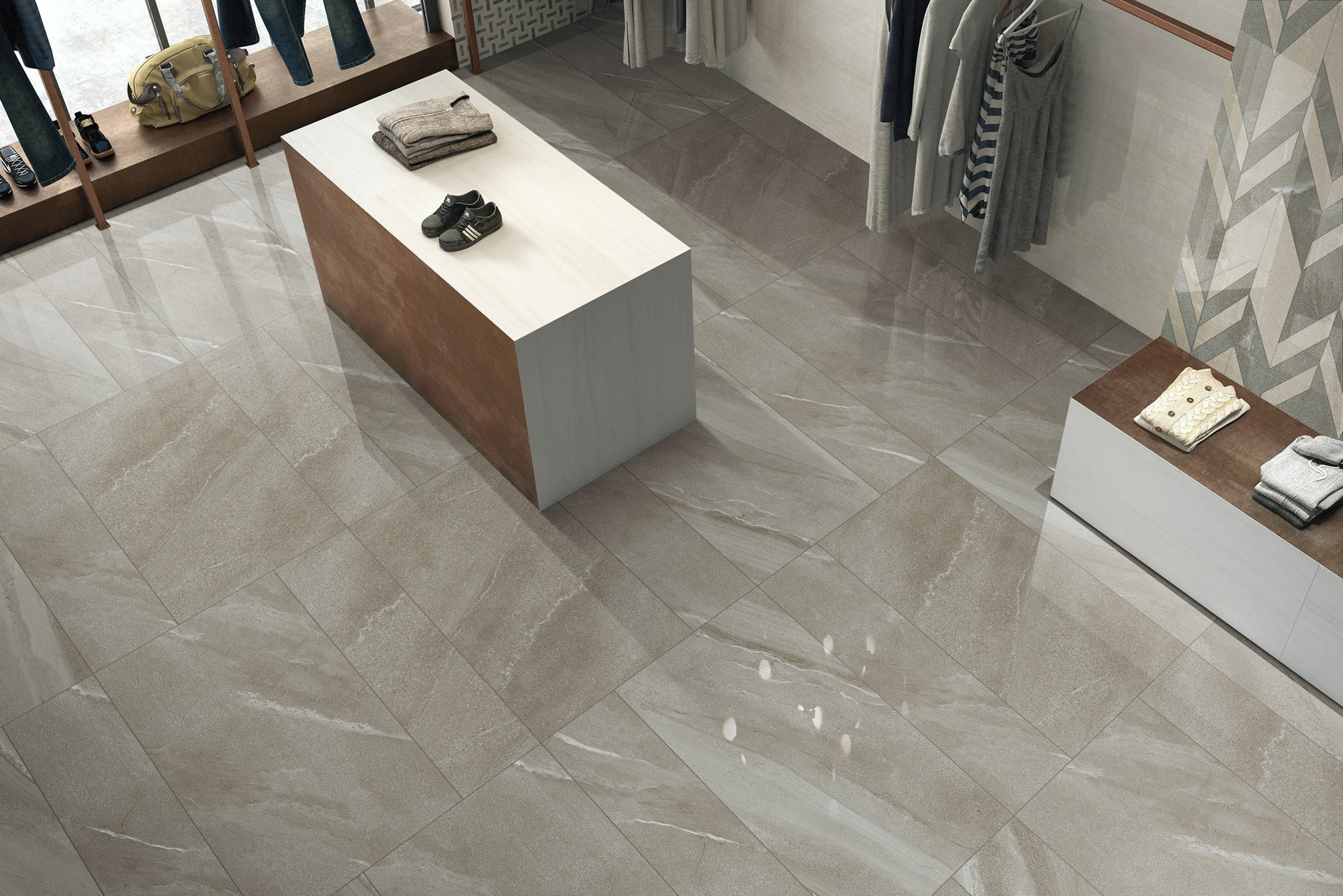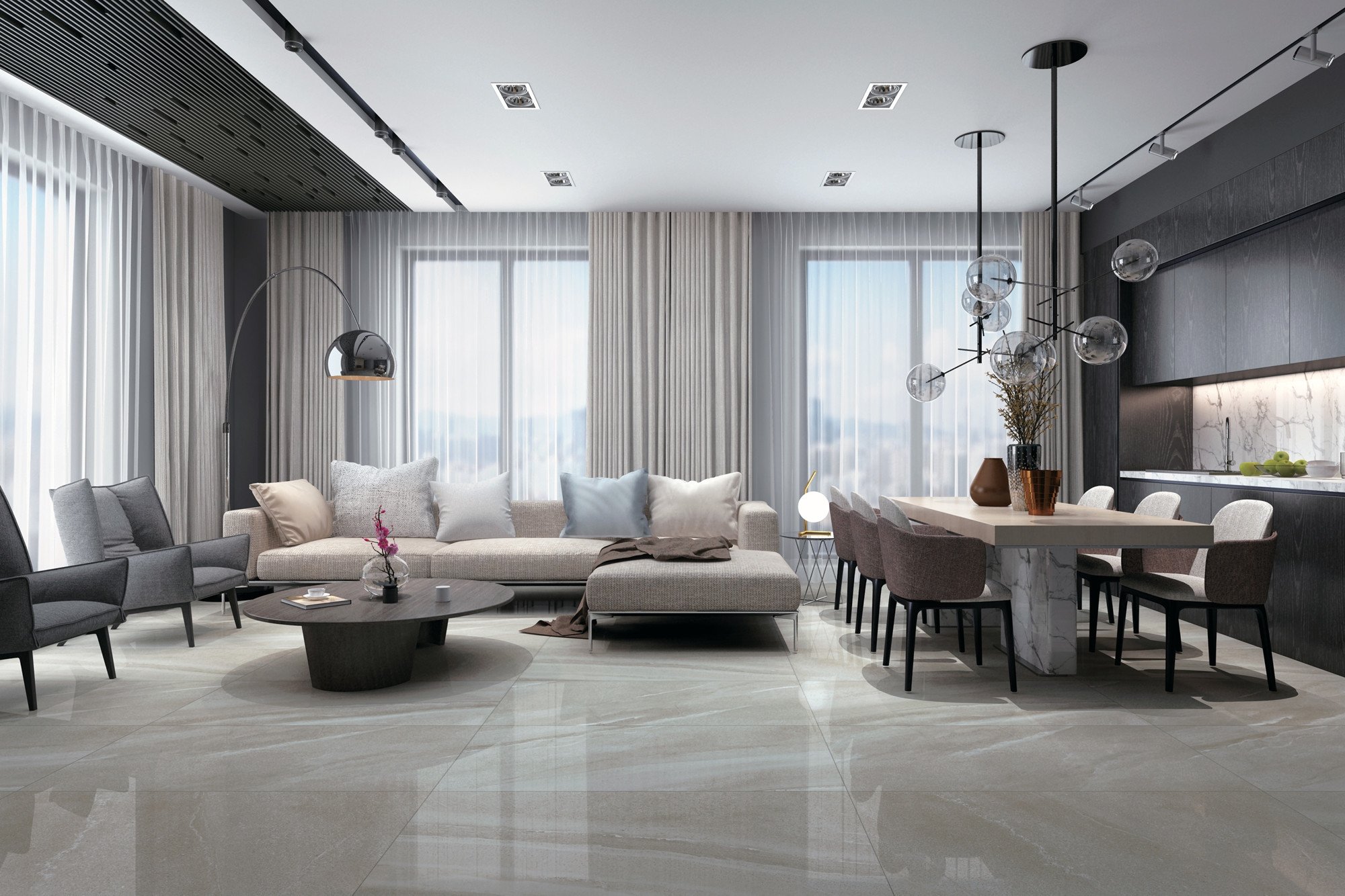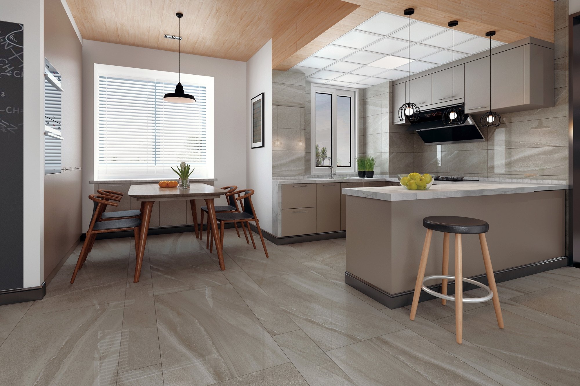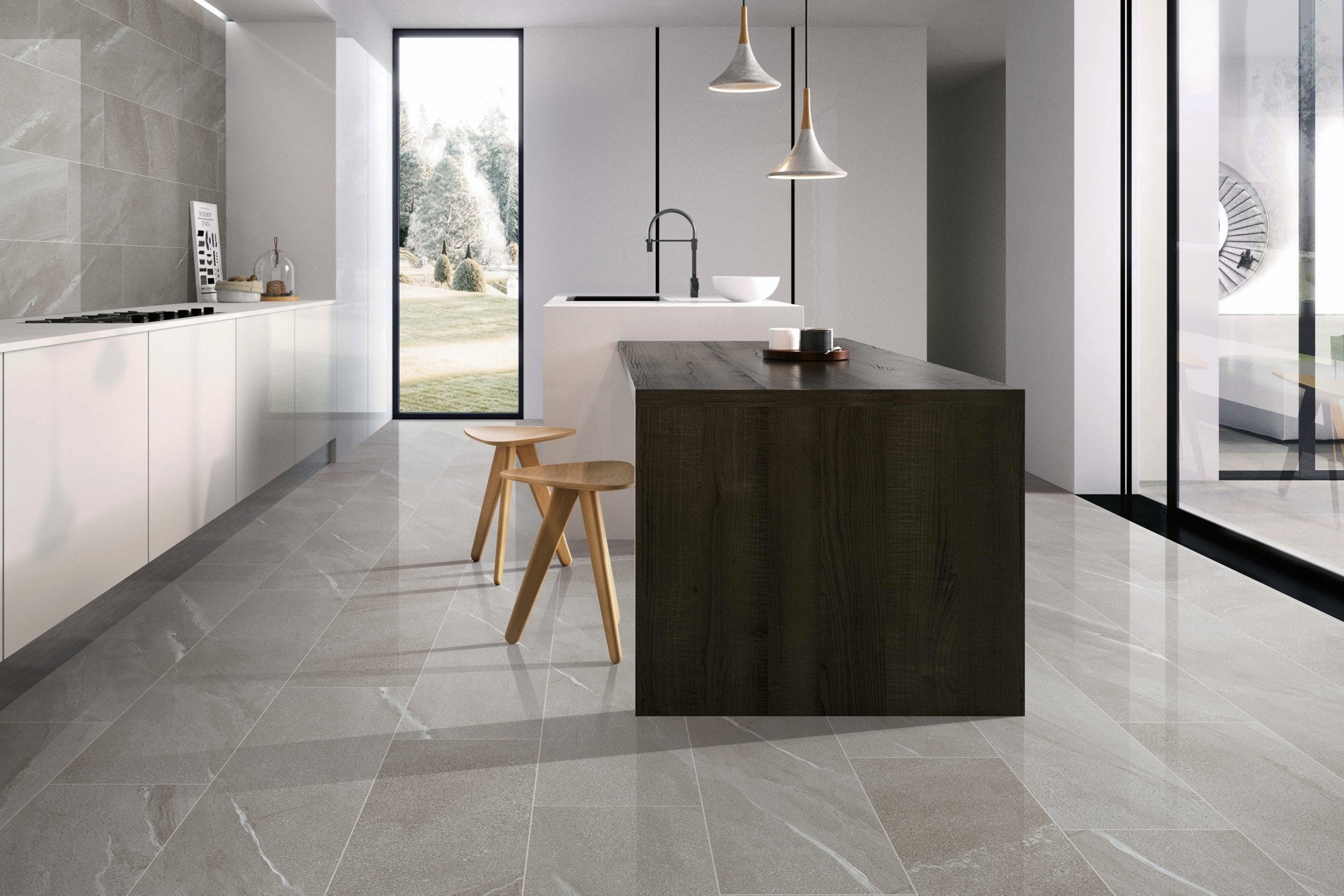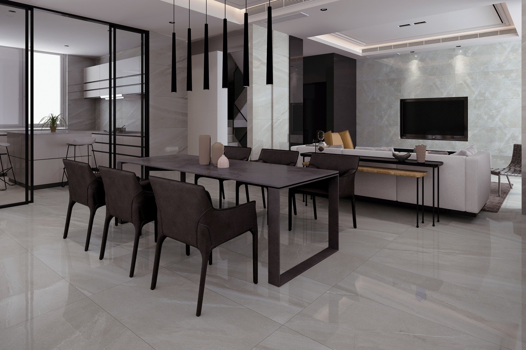 還原西班牙天然砂岩獨特的肌理與色彩,高雅脫俗的灰色調中線條紋理自由延伸,沉穩安靜之中是極簡的意象表達。散發曆史和原始的氣息,讓空間展現出無限的視覺張力。