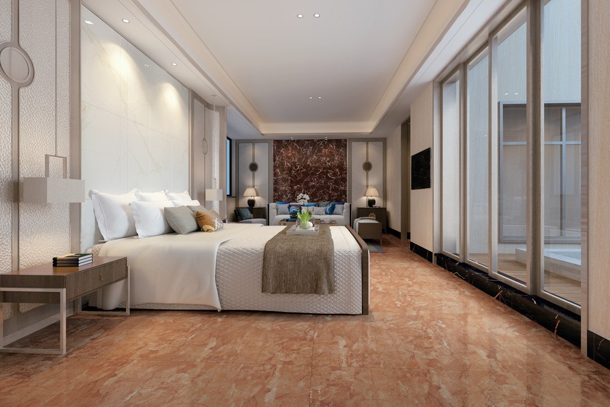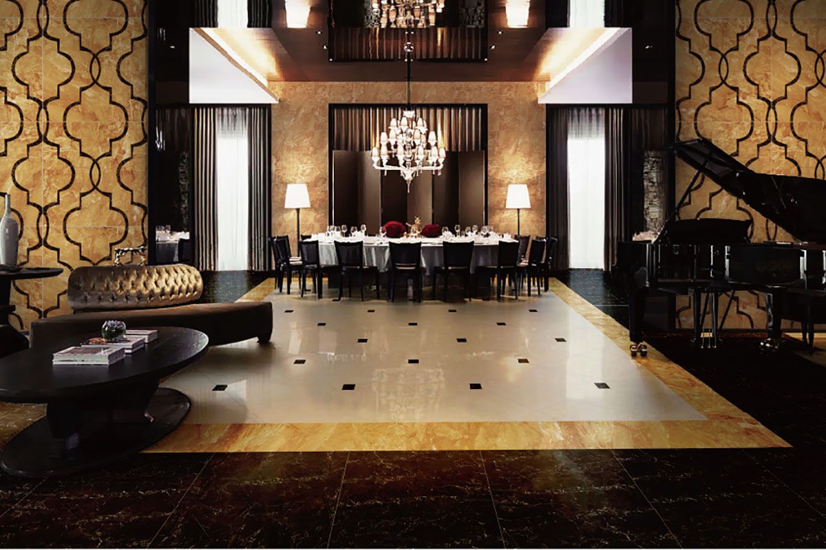 盧浮金產自法國比利牛斯山脈。比利牛斯山脈是一串古老山脈地質的再現,經不斷的侵蝕作用,在地麵裸露的地方,出現古老的海西沉積層,今天這些古老的岩石就構成了山脈的脊柱或軸向帶。石材盧浮金經地質運動和風化,色彩豔麗溫暖,紋理多姿似虹霓變化。為空間詮釋濃鬱的法式風情,彰顯出古典主義尊貴與優雅的本色。